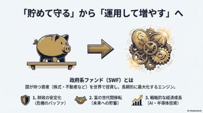 政府系ファンド(SWF)は、国の資産を専門家が運用して増やす仕組みであり、海外にはノルウェーやシンガポールなど多くの成功例があります。